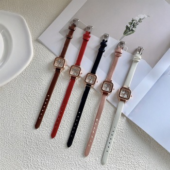 Kadın deri kayış için moda izle kare küçük arama bayanlar kadınlar için kuvars saatler hediyeler lüks kol saati